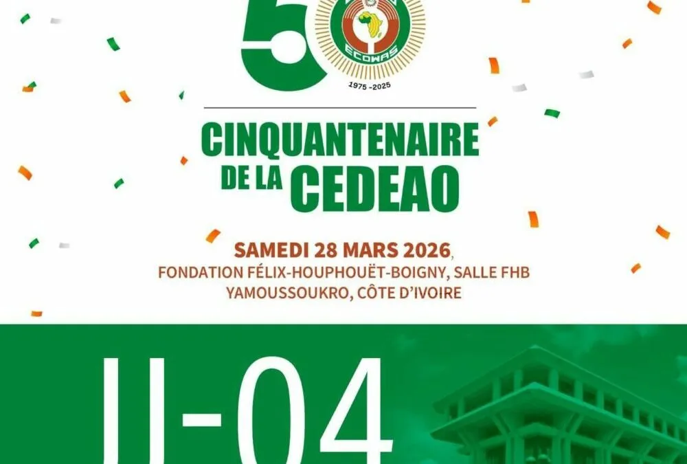 Dakar, 27 mars(SL-INFO) – La capitale ivoirienne, Yamoussoukro, s’apprête à accueillir deux journées de commémoration marquant le cinquantenaire de la Communauté Économique des États de l’Afrique de l’Ouest (CEDEAO). Prévues les 27 et 28 mars, ces activités d’envergure nationale et régionale sont coordonnées par la Représentation permanente de la Commission de la CEDEAO en Côte d’Ivoire, en collaboration avec le Bureau national de l’organisation communautaire.