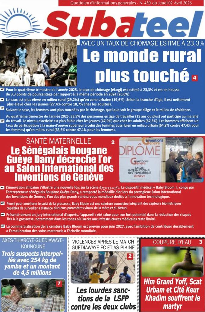 Saint-Louis, 02 mars(SL-INFO) – Navigation de l’article LA MATINALE DE SL-INFO : La polémique liée à un projet de l’ASER rebondit dans les quotidiens