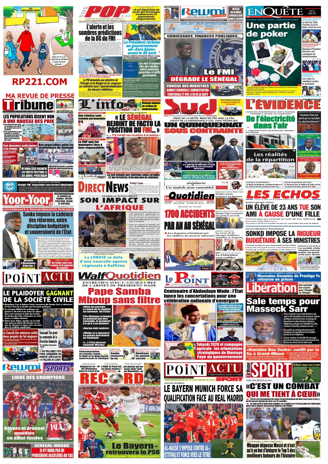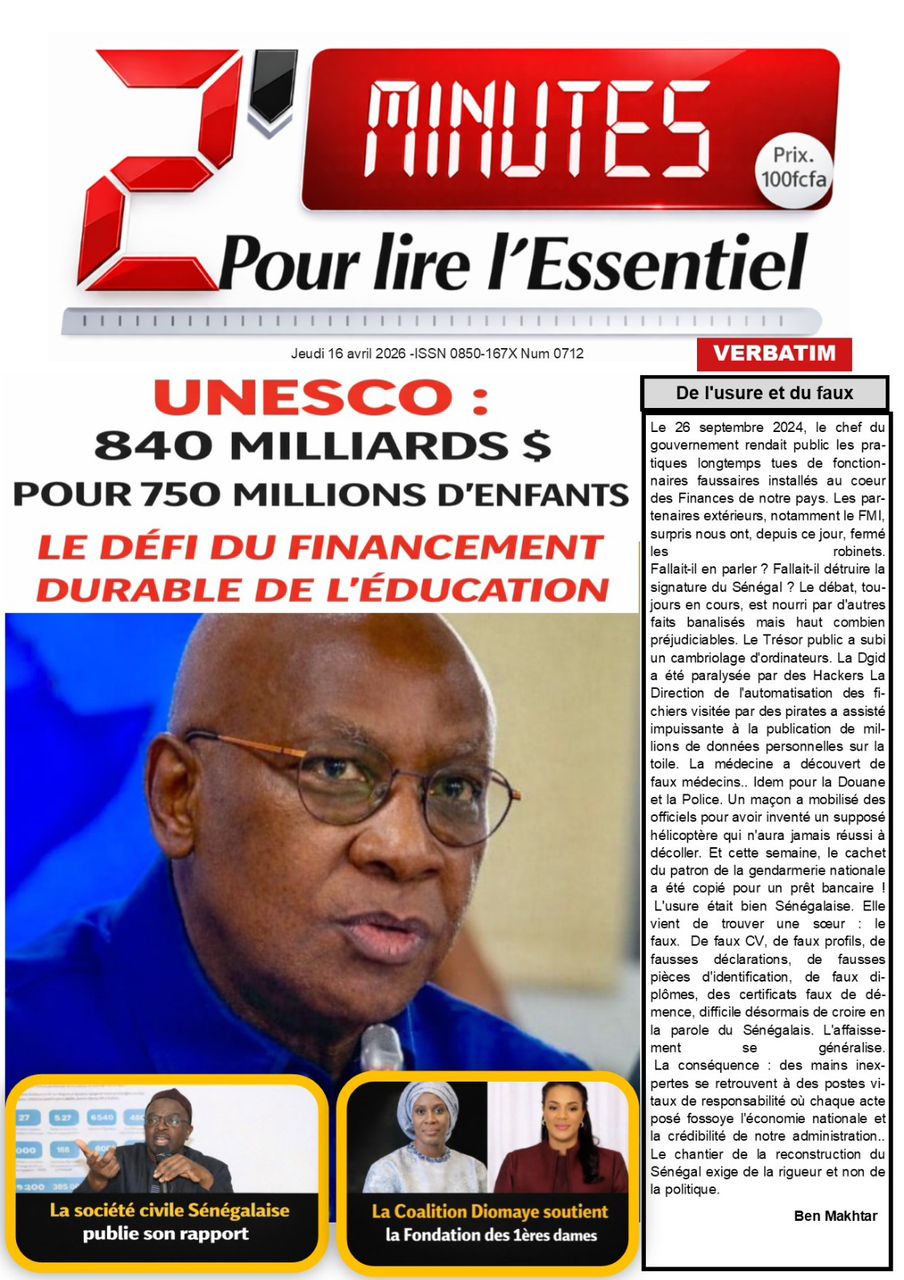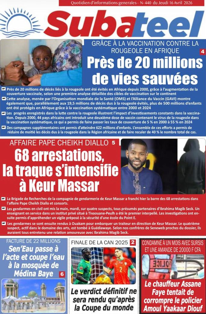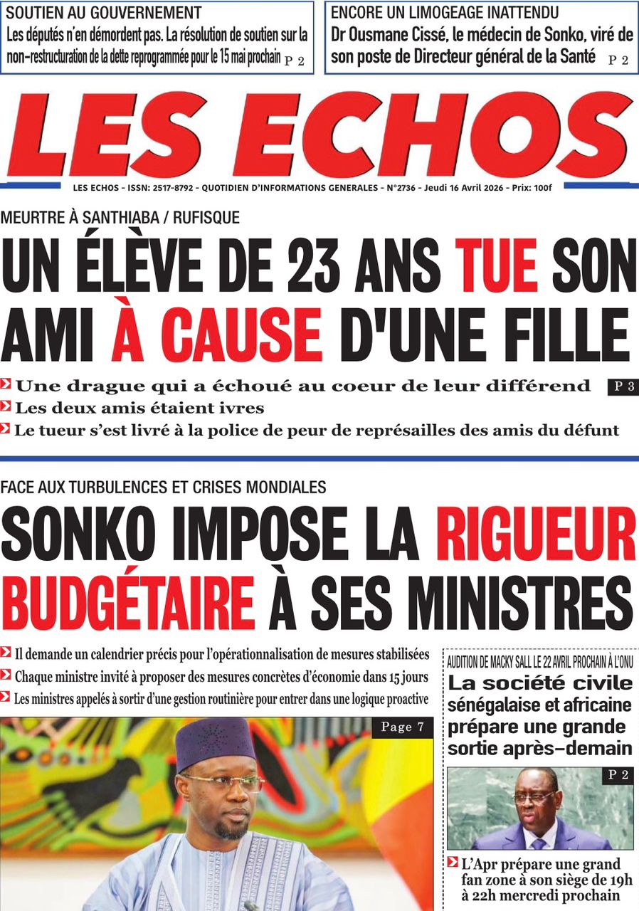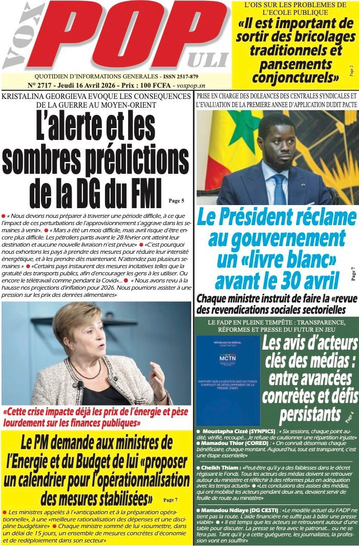 Saint-Louis, 16 avril (SL-INFO) – Navigation de l’article LA MATINALE DE SL-INFO : Les mesures d’anticipation de l’impact de la crise au Moyen-Orient au menu Meurtre de Baye Fall en Angleterre : Horizon sans frontières réclame toute la vérité