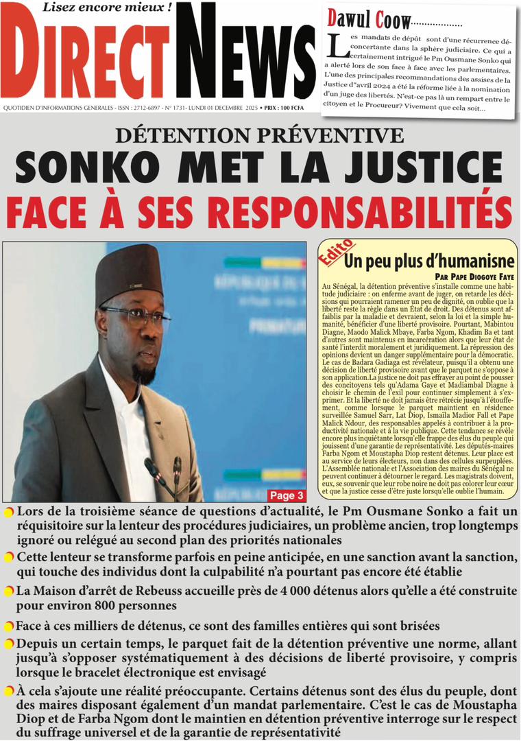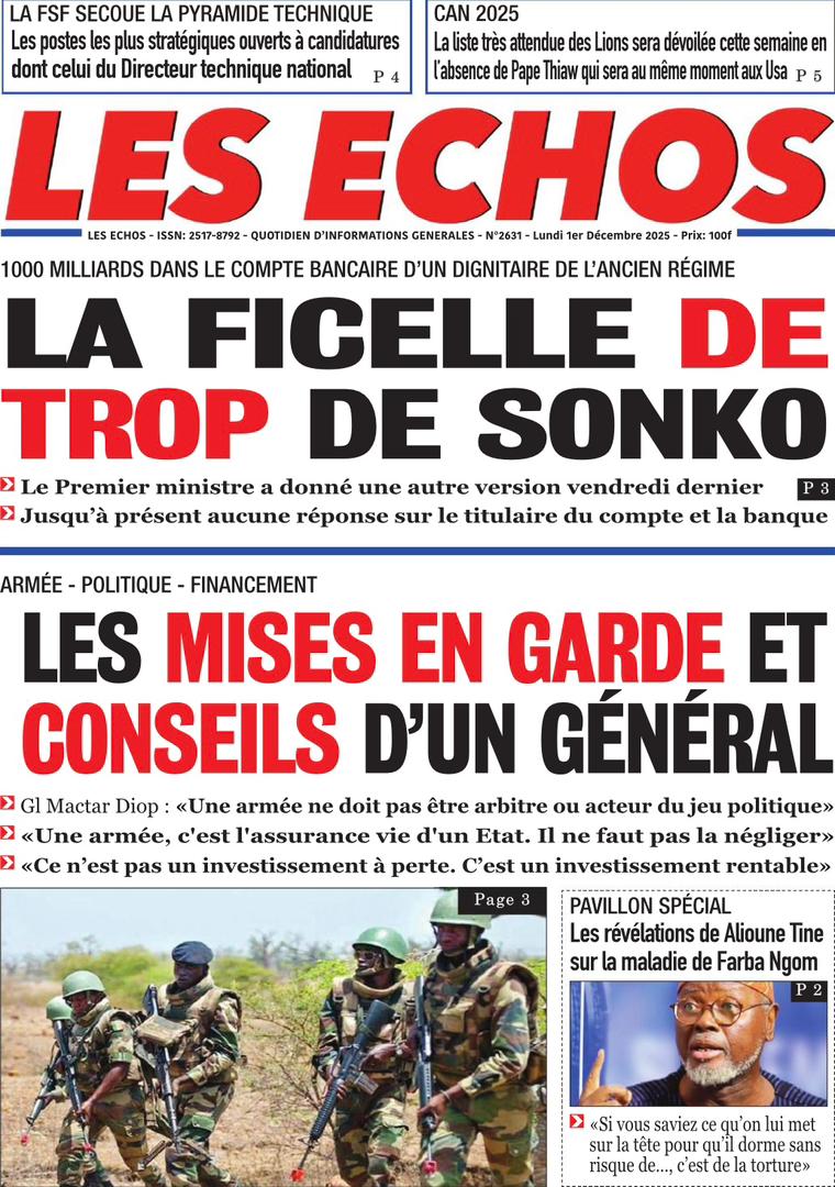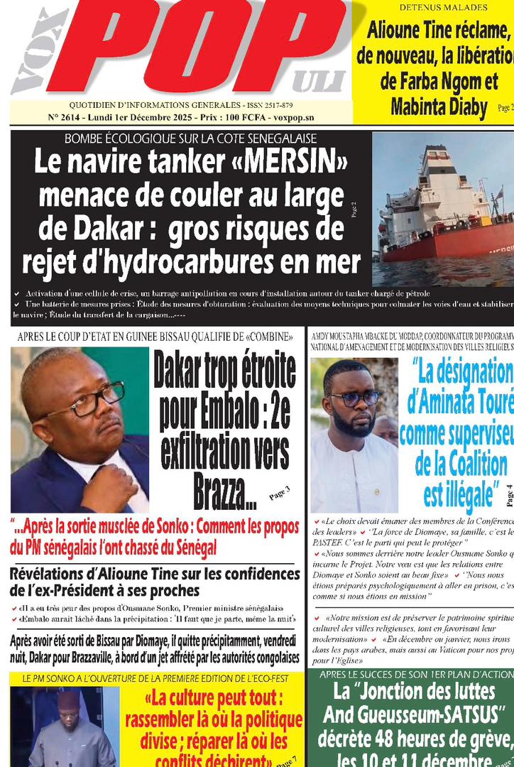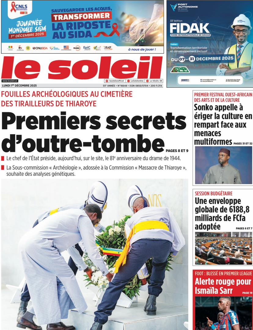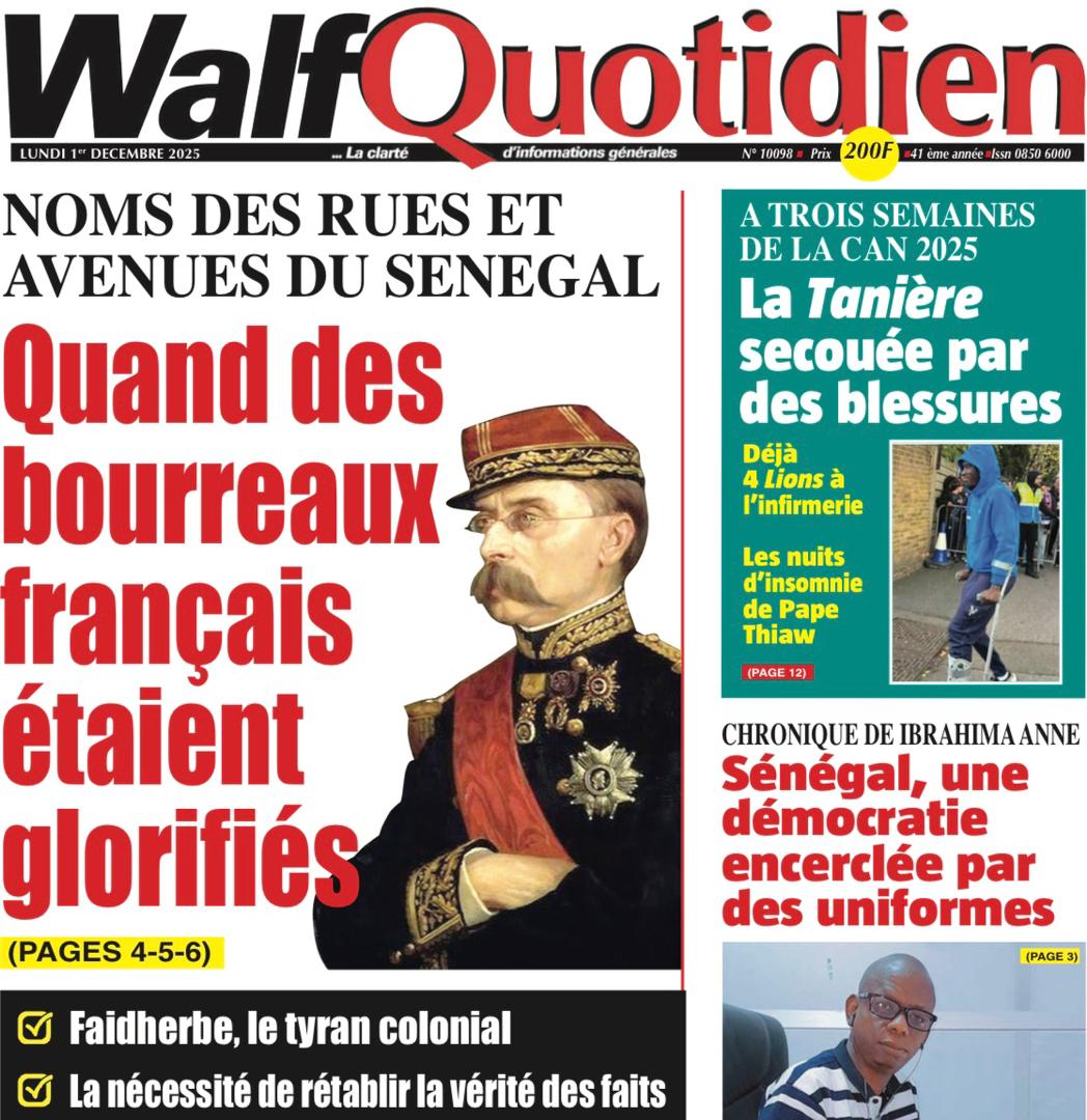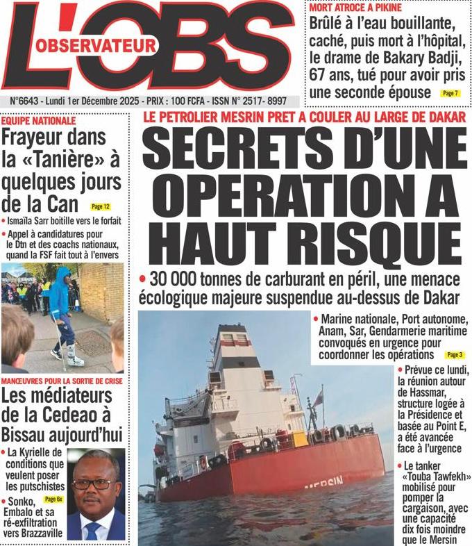 Saint-Louis, 01 déc (SL-INFO) – Navigation de l’article LA MATINALE DE SL-INFO : A la Une : le 81ème anniversaire du massacre de Tirailleurs sénégalais et l’affaire du navire tanker Mersin