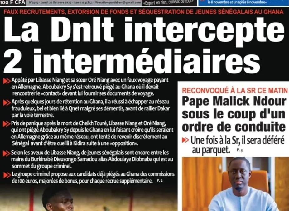 Saint-Louis, 27 Oct (SL-INFO) – Navigation de l’article LA MATINALE DE SL-INFO : L’actualité politique en exergue Tchad : les avocats de Succès Masra demandent sa libération pour raisons médicales
