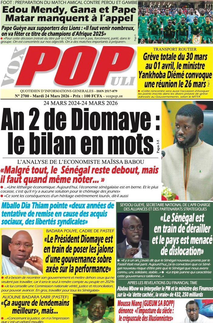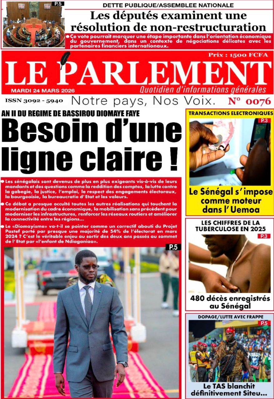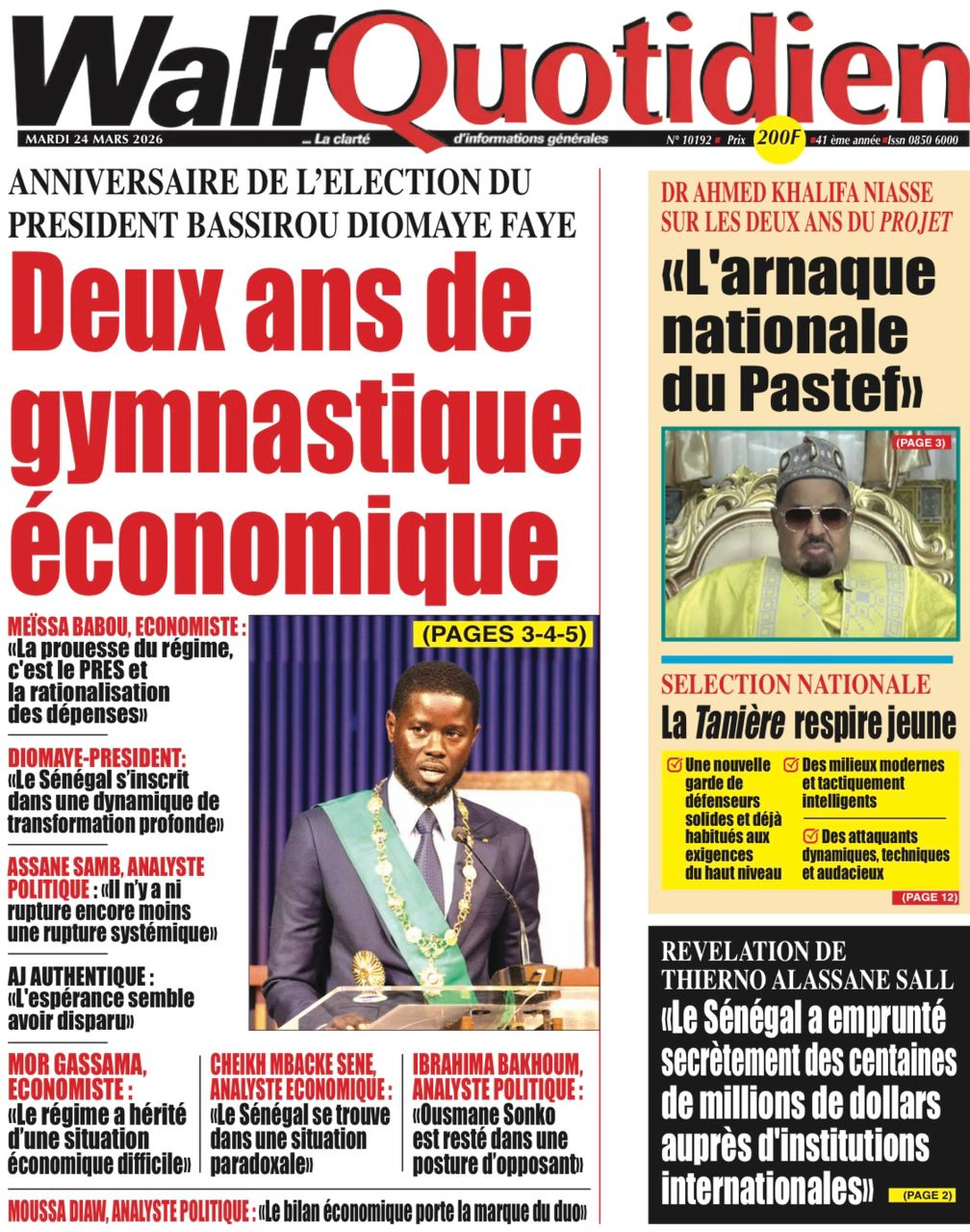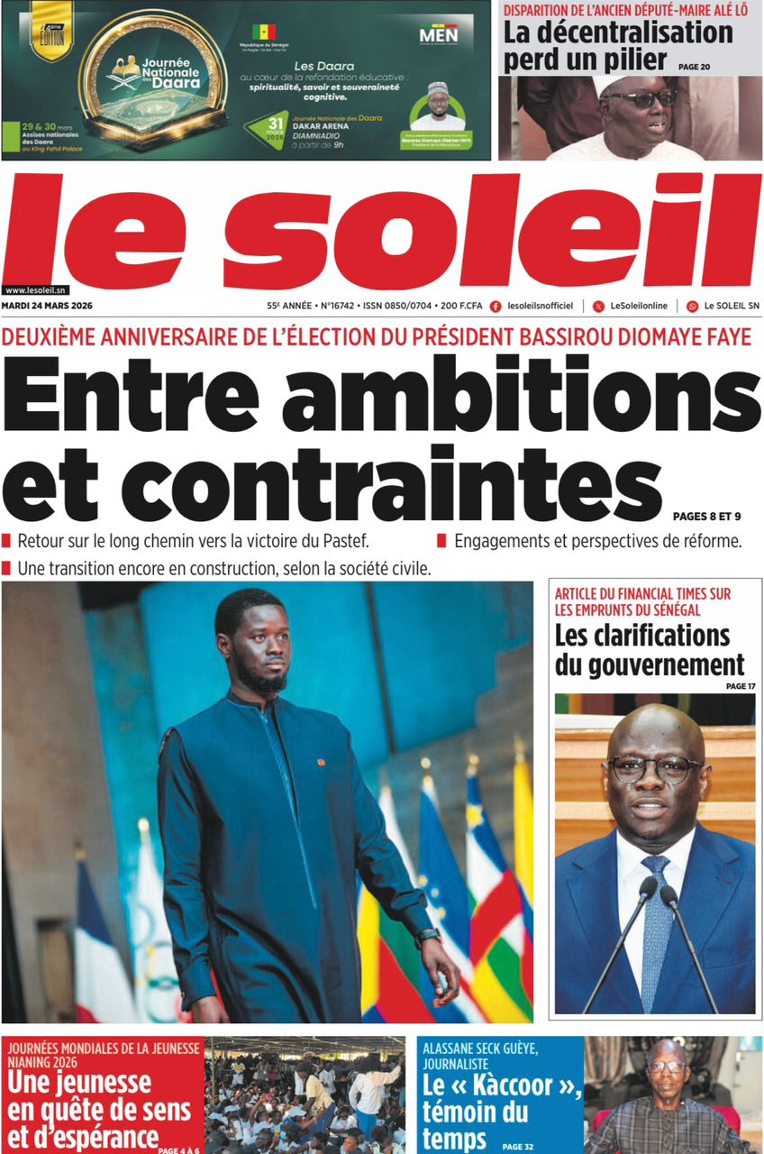 Saint-Louis, 24 mars(SL-INFO) – Navigation de l’article LA MATINALE DE SL-INFO : A la Une : l’an 2 de l’élection de Bassirou Diomaye Faye