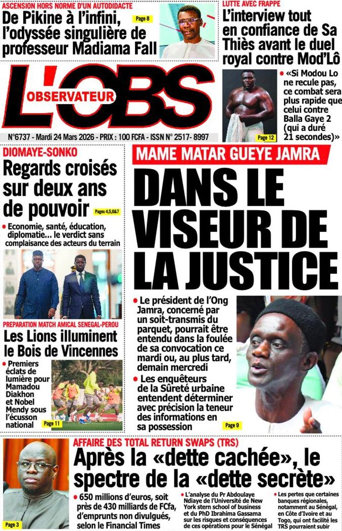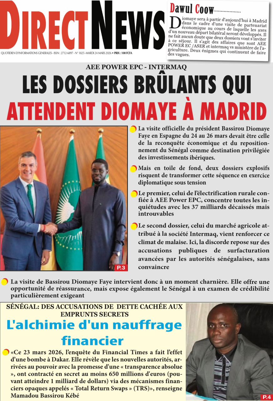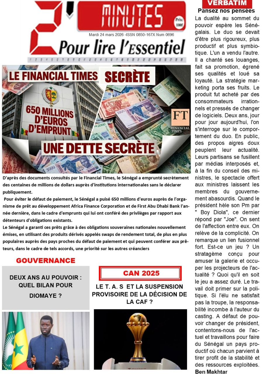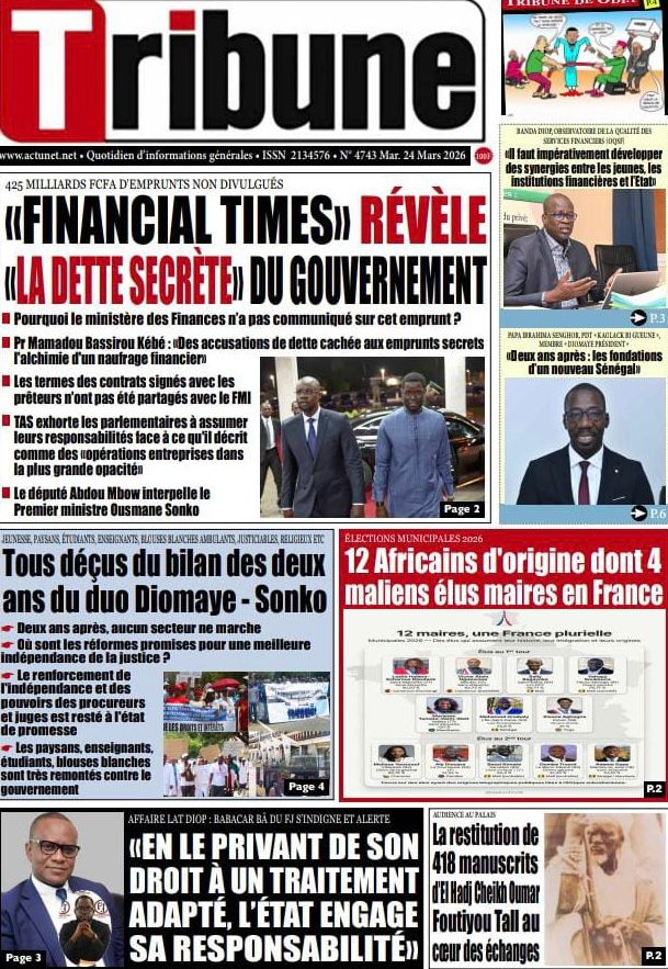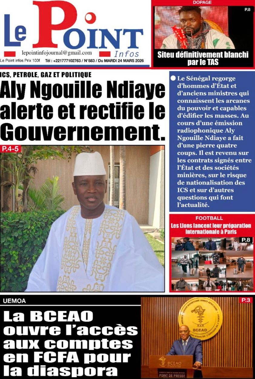 Saint-Louis, 24 mars(SL-INFO) – Navigation de l’article LA MATINALE DE SL-INFO : A la Une : l’an 2 de l’élection de Bassirou Diomaye Faye