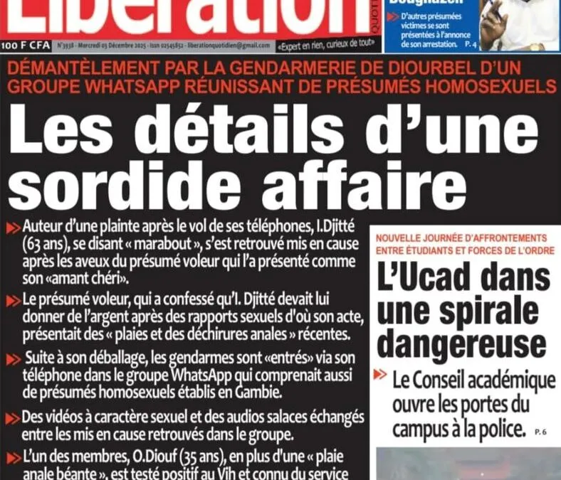 Saint-Louis, 03 déc (SL-INFO) – Navigation de l’article LA MATINALE DE SL-INFO : La violence à l’Ucad en exergue dans les journaux LA MATINALE DE SL-INFO : La protection sociale et la violence à l’UCAD au menu des quotidiens