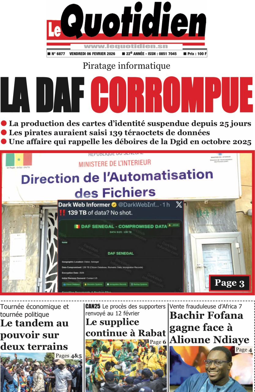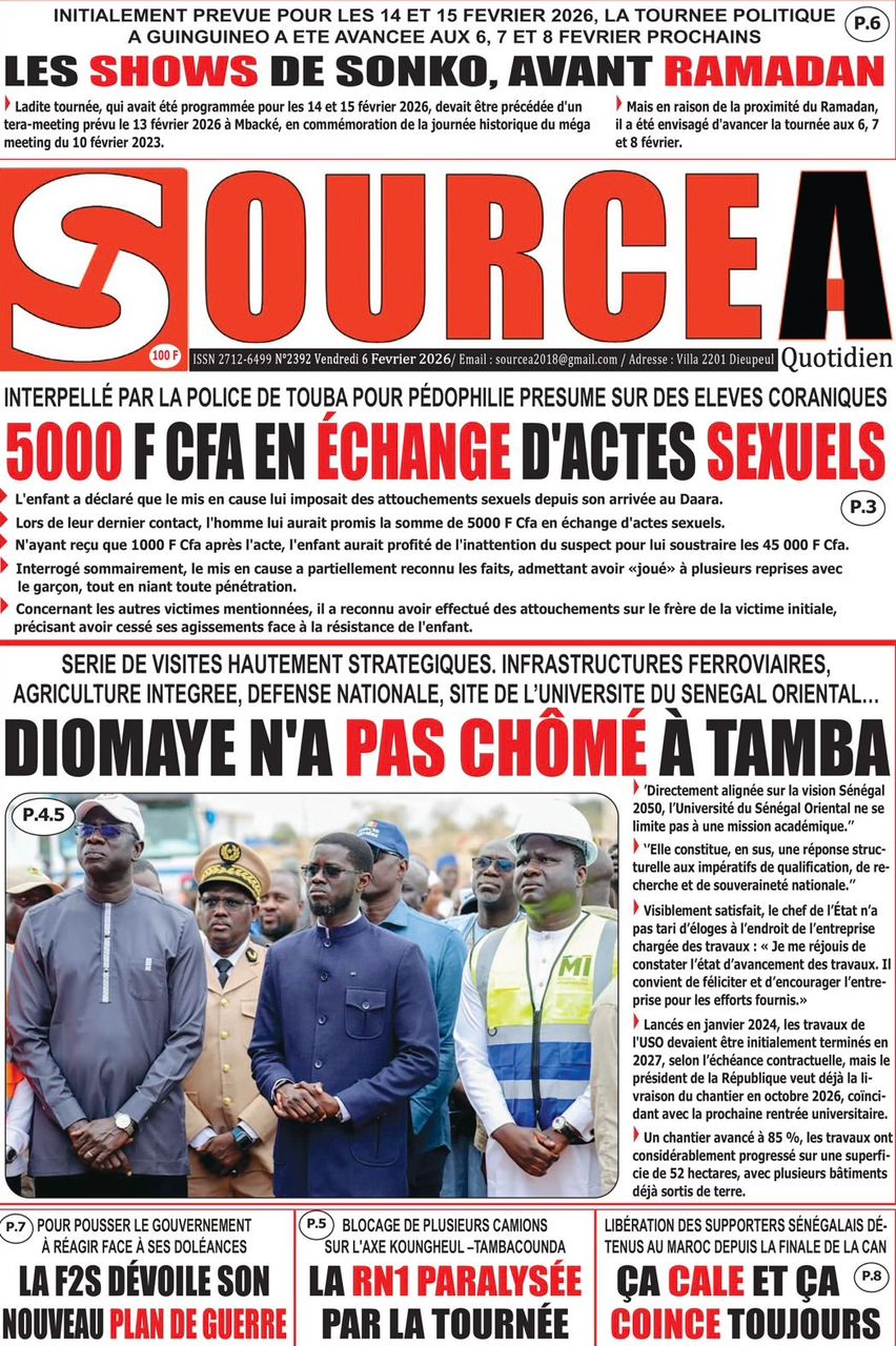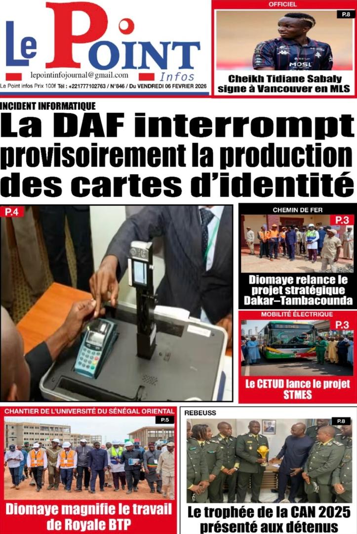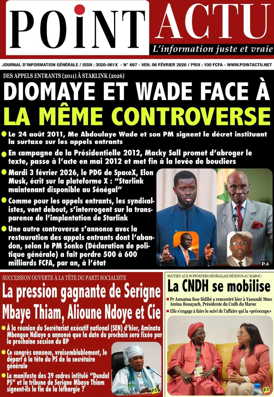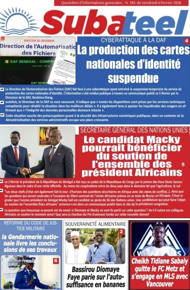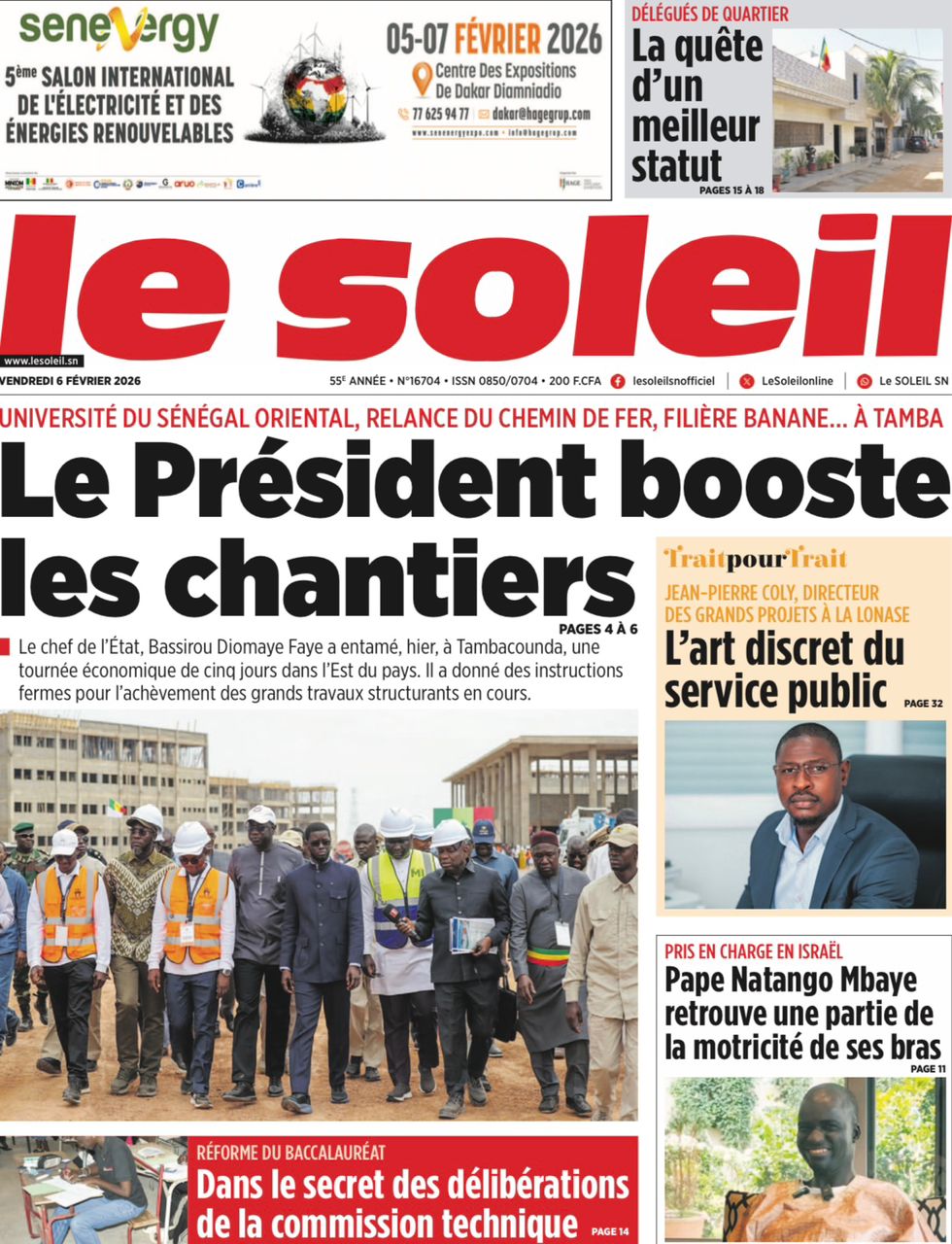Saint-Louis, 06 fév (SL-INFO) – Navigation de l’article LA MATINALE DE SL-INFO : La tournée économique du président Faye, sujet incontournable dans les quotidiens LA MATINALE DE SL-INFO : La candidature éventuelle de Macky Sall à l’ONU et d’autres sujets en exergue