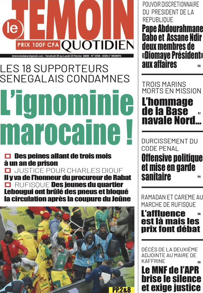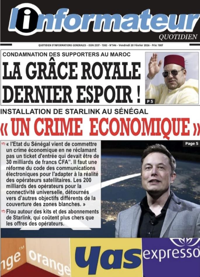 Saint-Louis, 20 fév (SL-INFO) – Screenshot Screenshot Screenshot Screenshot Screenshot Screenshot Screenshot Screenshot Screenshot Screenshot Screenshot Navigation de l’article LA MATINALE DE SL-INFO : Le verdict de la justice marocaine sur l’affaire des supporters sénégalais en exergue Programme de Développement Touristique : Saint-Louis accélère la dynamique avec le lancement du PDT2