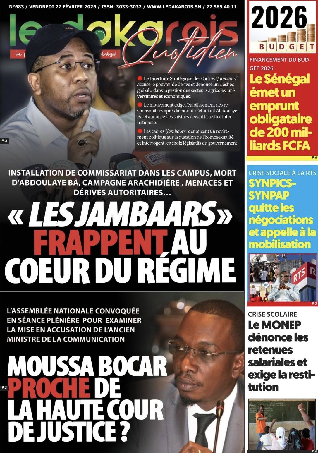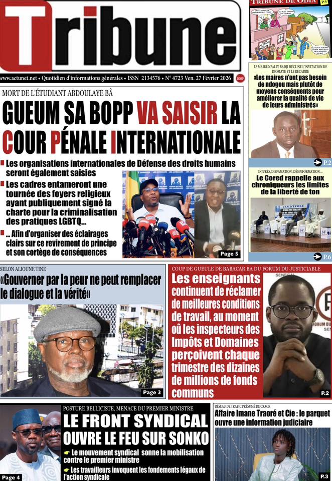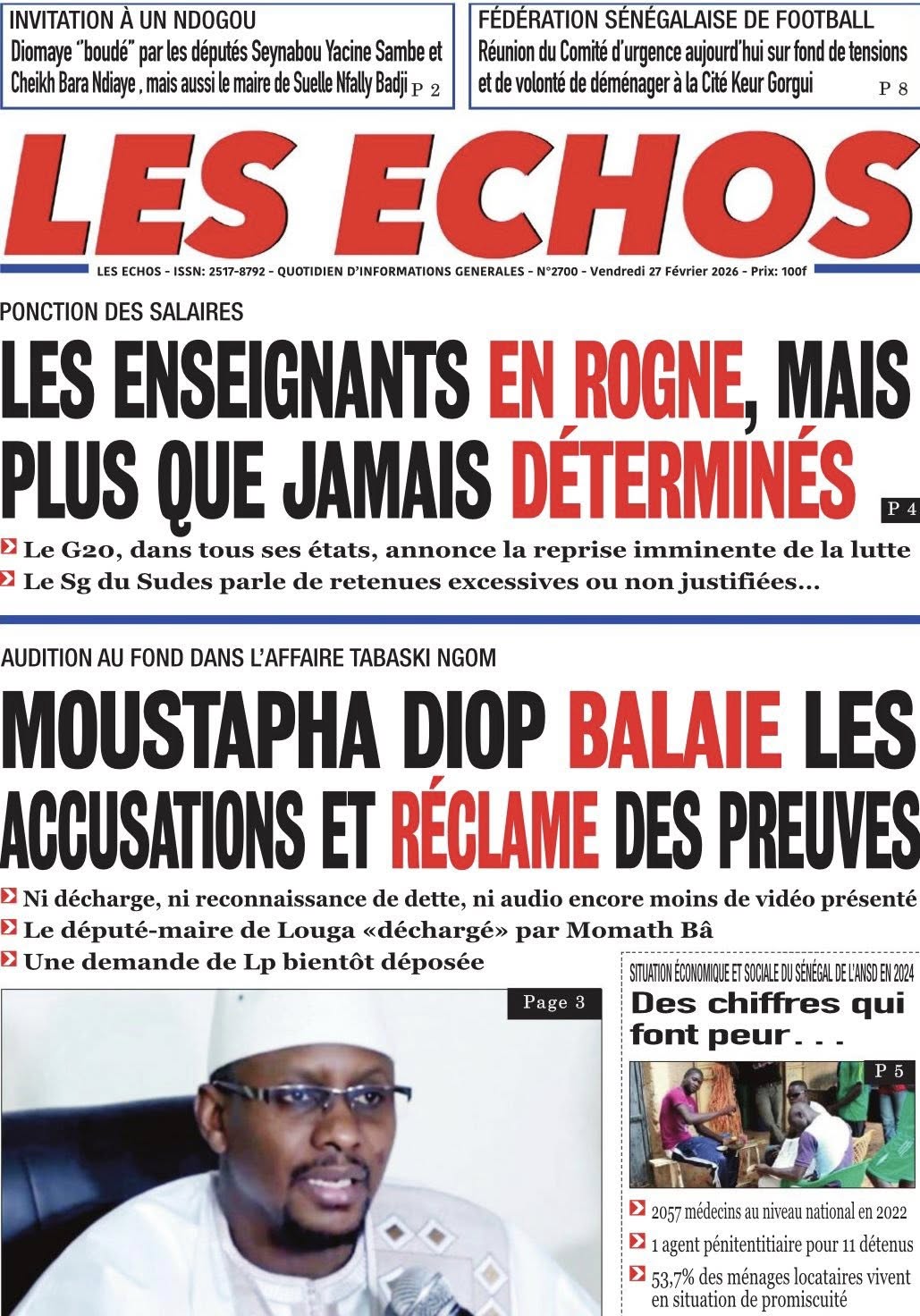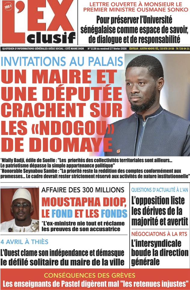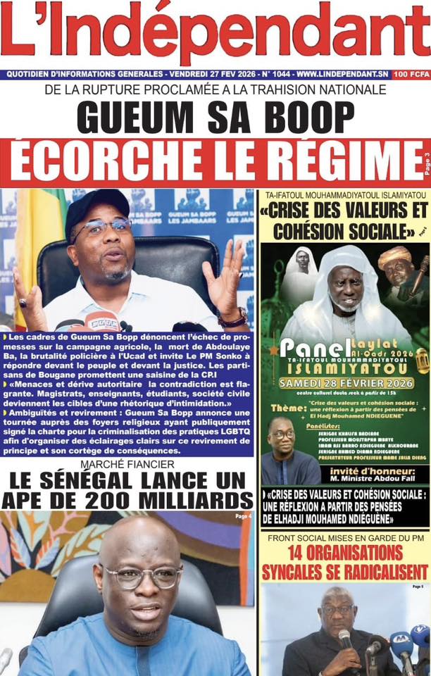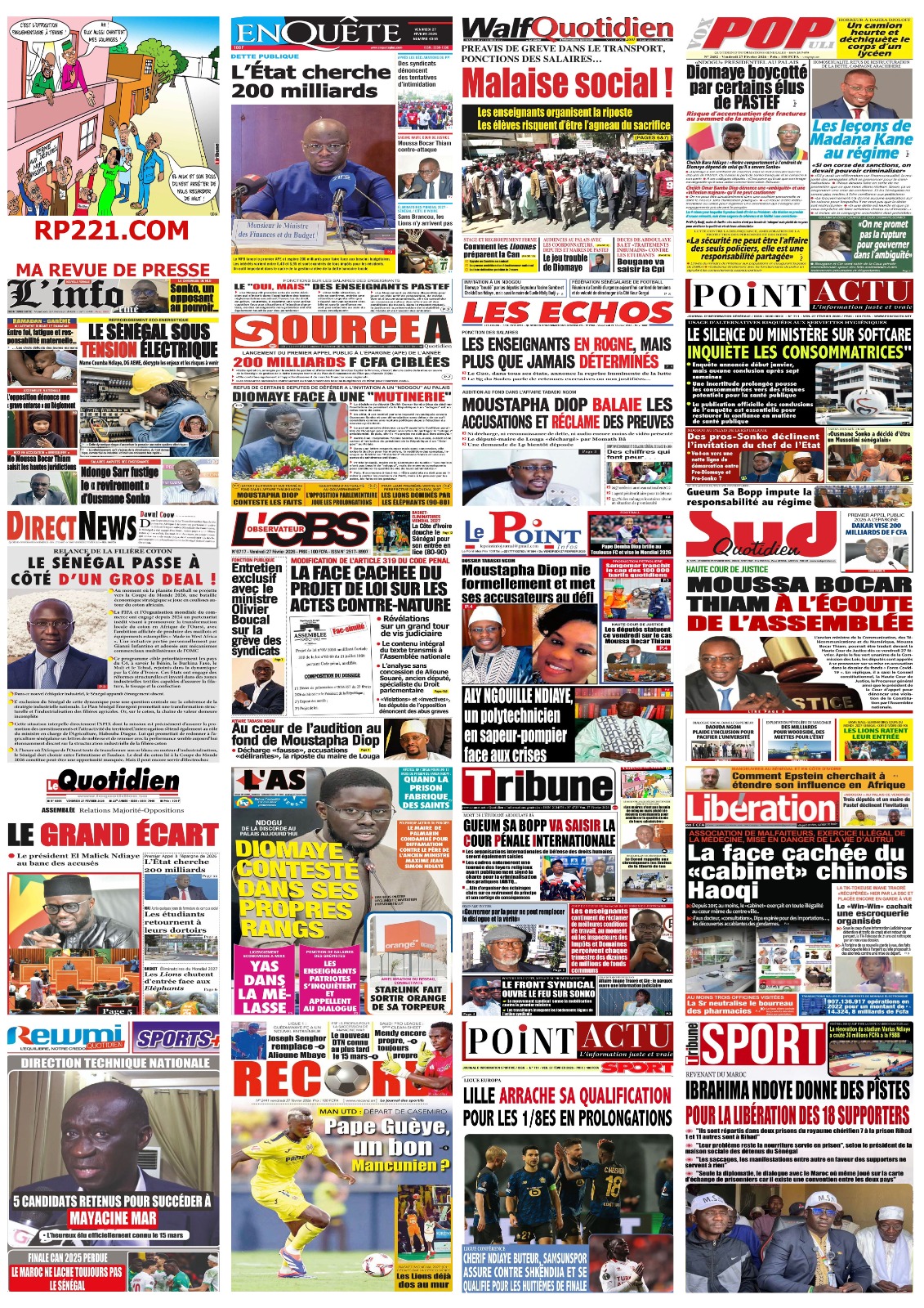 Saint-Louis, 27 fév (SL-INFO) – Screenshot Screenshot Screenshot Screenshot Screenshot Screenshot Screenshot Screenshot Screenshot Screenshot Screenshot Navigation de l’article LA MATINALE DE SL-INFO : La colère des syndicats d’enseignants à la une des quotidiens.