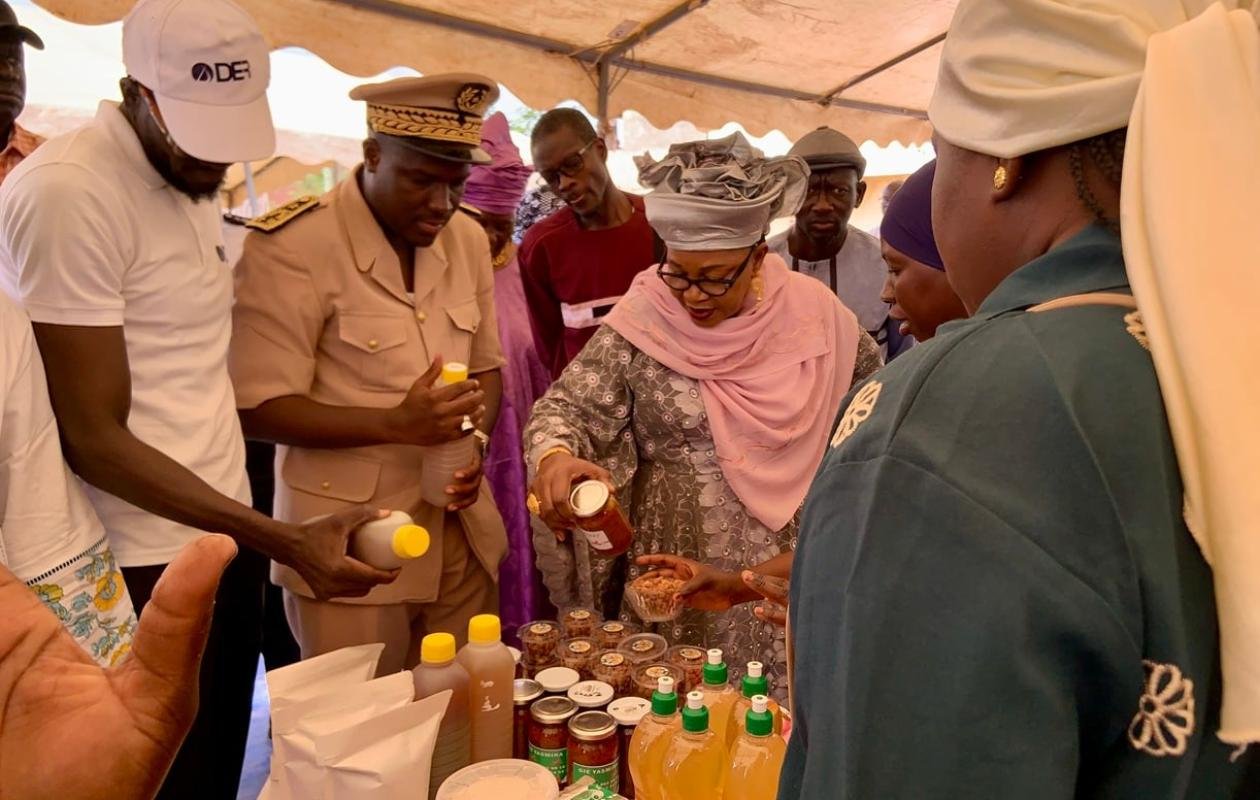 Une remise symbolique de financements à 14 GIE a été effectuée. Au cours de la visite des stands, le préfet et le délégué général ont pu admirer des productions issues des activités dans le maraîchage, la transformation de produits locaux, la restauration rapide et l’artisanat.