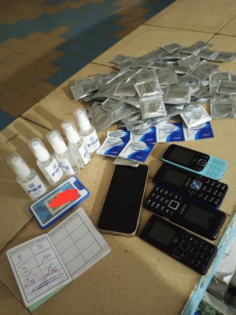 L’intervention est le résultat d’un renseignement signalant une activité de prostitution dans un appartement de ladite cité. Ainsi, les enquêteurs ont choisi une opération d’infiltration. Un policier, se faisant passer pour un client, a contacté la suspecte et convenu d’un rendez-vous contre rémunération. Une fois sur place, les agents ont révélé leur identité et procédé à une fouille minutieuse des lieux. « Une centaine de préservatifs, six (6) sachets de lubrifiants sexuels, cinq (5) flacons intimes et cinq (5) téléphones portables ont été saisis. »