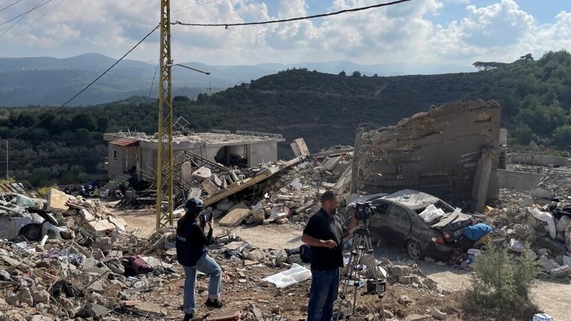 Liban, 14 Nov (SL-INFO) – Au Liban, l’armée israélienne a continué à bombarder la banlieue sud de Beyrouth, fief du Hezbollah, ce mercredi 13 novembre, tandis que le bilan d’une frappe mardi soir sur le village de Joun, à 50 km au sud de la capitale libanaise, s’est alourdi avec au moins une vingtaine de morts, selon plusieurs habitants sur place. Un bâtiment qui abritait des déplacés a été pris pour cible. Une pelleteuse s’active pour déblayer les gravats. Une maison à terre, une autre éventrée. C’est tout ce qu’il reste après la frappe israélienne. Sous les décombres, il resterait encore des corps. Un vieil homme, hagard, nous montre un sac à main qu’il a récupéré sous les gravats.