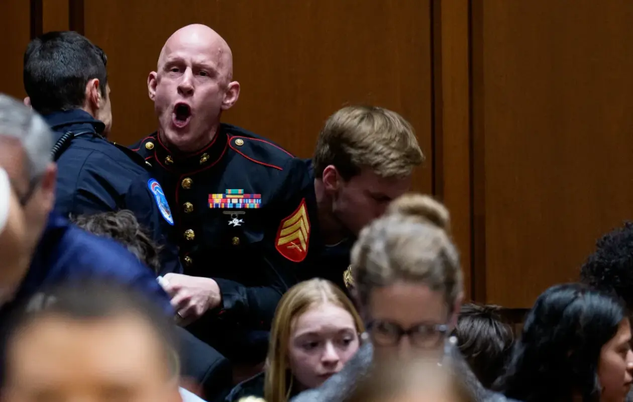 Un militaire en uniforme ceinturé par quatre hommes au Sénat américain. Scène surréaliste à Washington ce mercredi 4 mars lorsque Brian McGinnis, ancien Marine de l’armée américaine, a été expulsé manu militari d’une audition devant une commission sénatoriale, alors qu’il disait son opposition à la guerre en Iran.