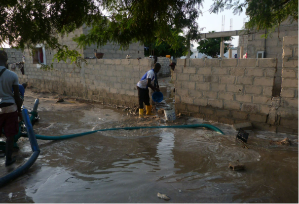 Sous l’assaut des vagues, plusieurs maisons se sont écroulées. Pire, l’eau arrive par les lagunes du Nord et semble entourer désormais l’ensemble du village.
