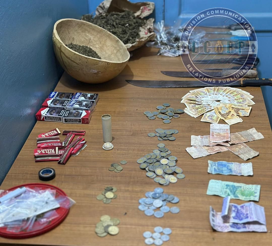 Sangalkam, 27 Oct (SL-INFO) – La brigade territoriale de Sangalkam, appuyée par un escadron de la Légion de gendarmerie d’intervention (LGI), a mené, dans la nuit du dimanche 26 octobre 2025, une vaste opération de lutte contre la criminalité organisée. Un réseau criminel a été démantelé dans la zone, a appris Seneweb de sources proches du commandement et neuf individus ont été arrêtés pour association de malfaiteurs, détention illégale d’armes de 5e catégorie et trafic de drogue. Au cours des perquisitions effectuées aux domiciles des suspects, les enquêteurs ont saisi 825 g de chanvre indien, 74 950 F CFA en espèces ainsi que de plusieurs armes blanches.