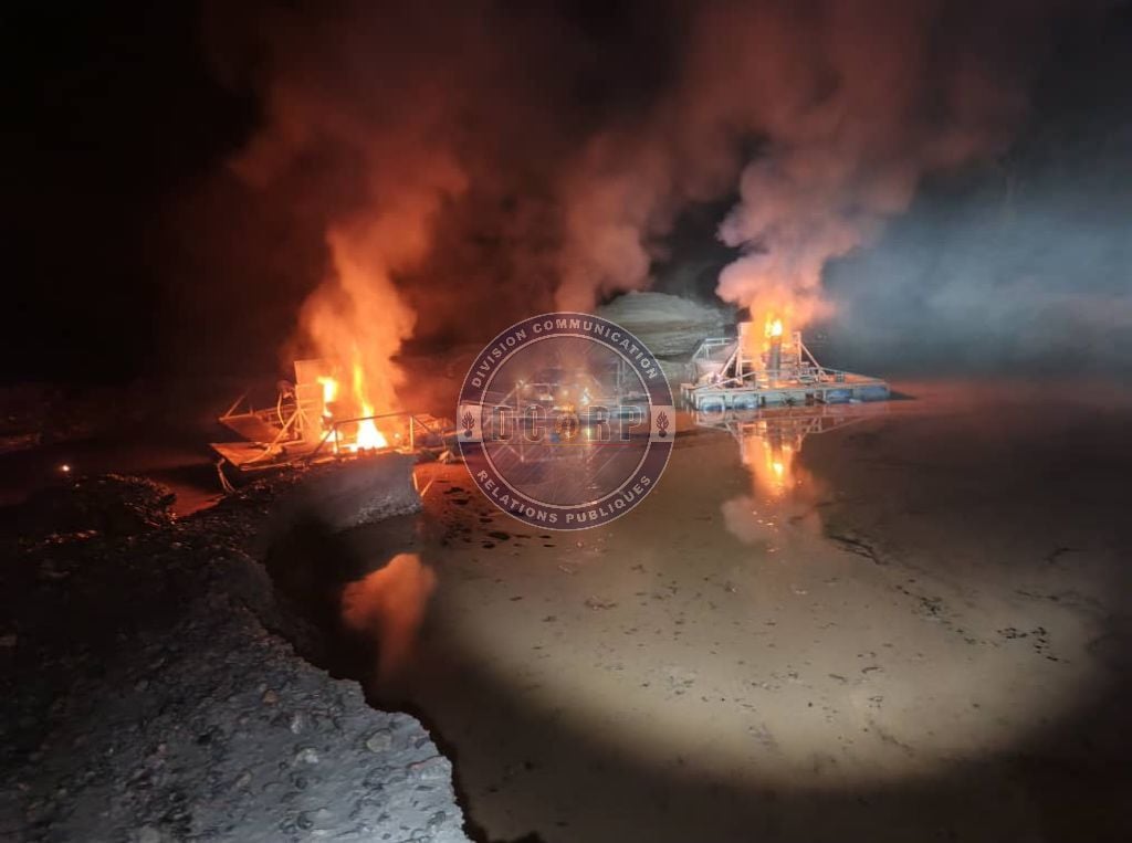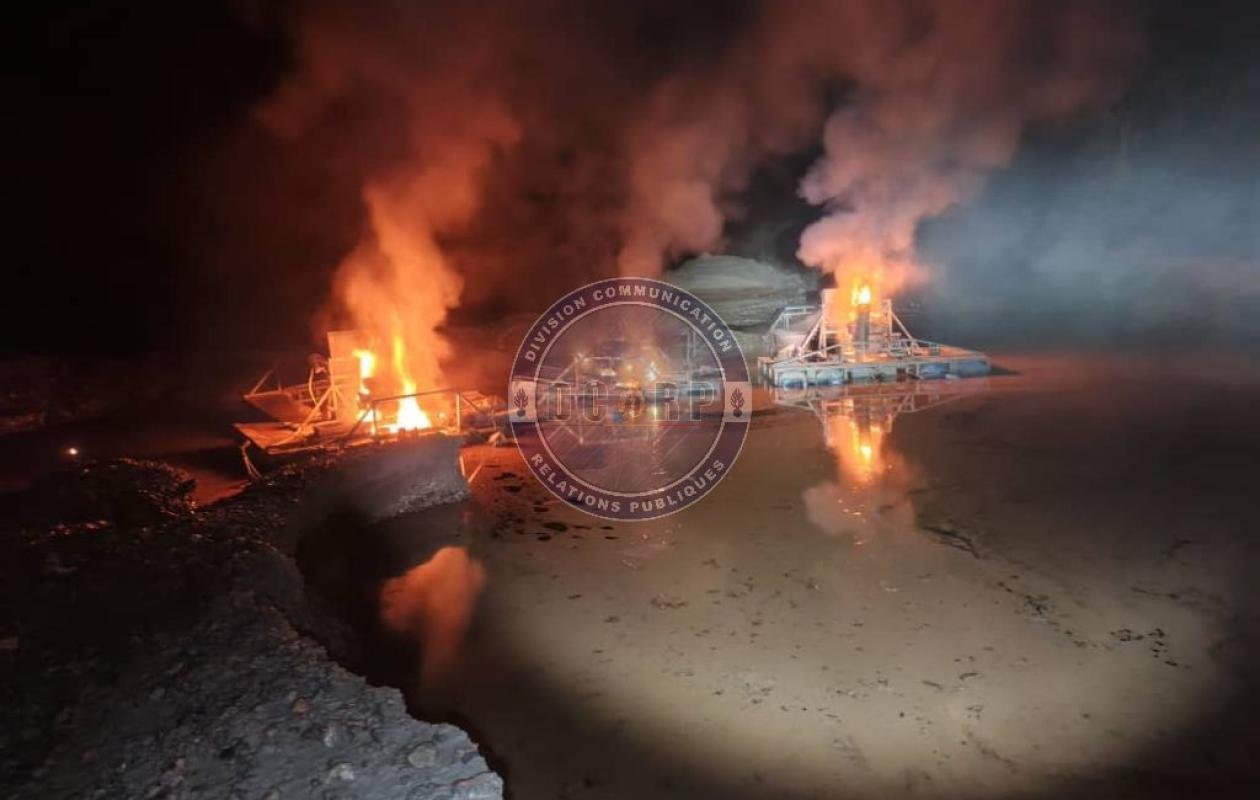 Le bilan de l’opération fait état de la saisie et de la destruction de 13 dragues et deux groupes électrogènes.